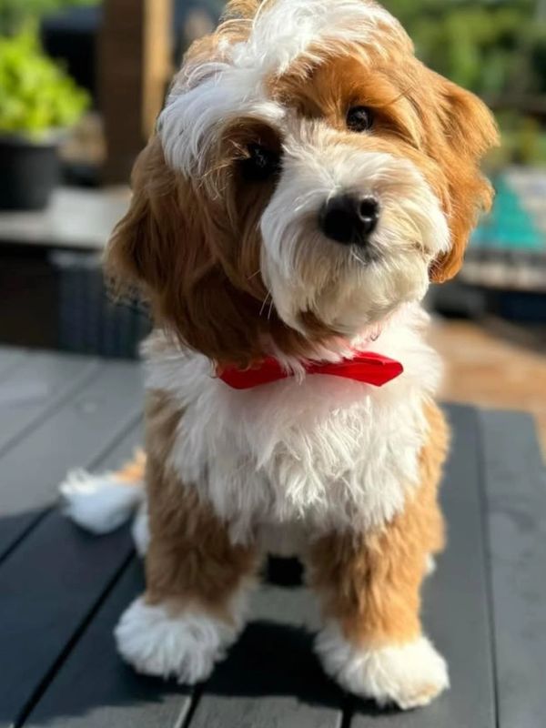 Un magnifique caniche de 6 livres doté d’un beau roux avec une touche de blanc qui attire tous les regards.